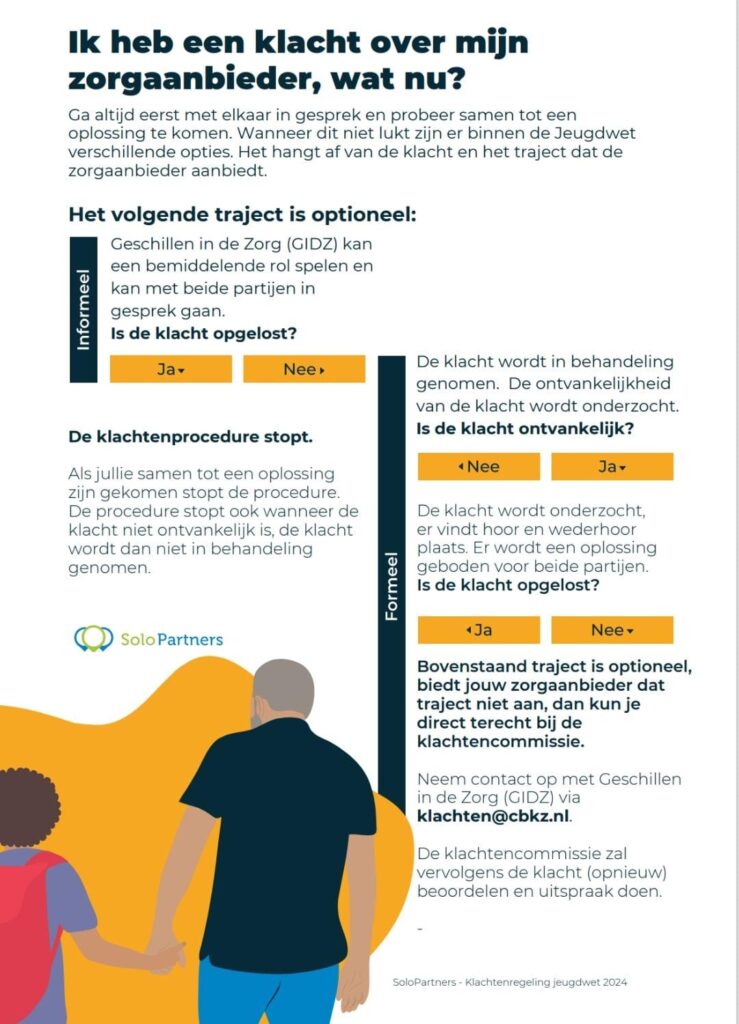 De klachtencommissie van Solopartners kan inzage geven in de klachtenregeling JW en WMO Solopartners Versie april 2024. Deze is ook op te vragen bij Chancare, alswel bij de Solopartners zelf.